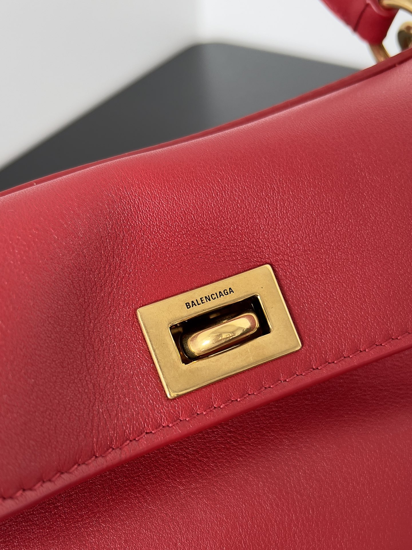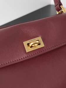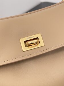 A sleek gold-tone turn-lock closure (embossed with the Balenciaga logo) for secure access.