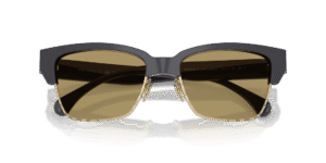 Optical Frames: A black-and-gold style with clear, blue-light filtering lenses, ready for prescription customization.