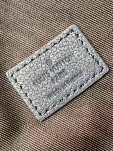 Black hardware, including zippers and clasps, complements the overall design. The interior is lined with black fabric and includes a small leather tag embossed with “Louis Vuitton Paris made in France,” emphasizing the brand’s commitment to craftsmanship.