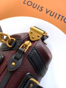 • It’s finished with polished gold-tone hardware, including the iconic LV logo plaque on the front.