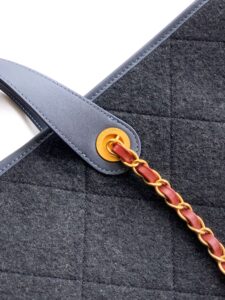 This Chanel large tote redefines everyday luxury, crafted from exclusive charcoal quilted wool tweed (a signature Chanel fabric prized for its texture, durability, and timeless sophistication).