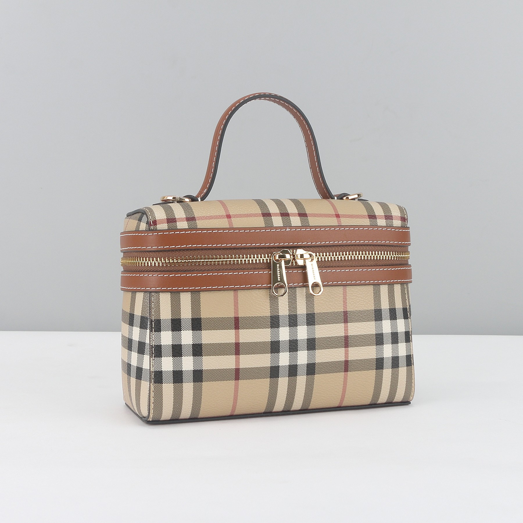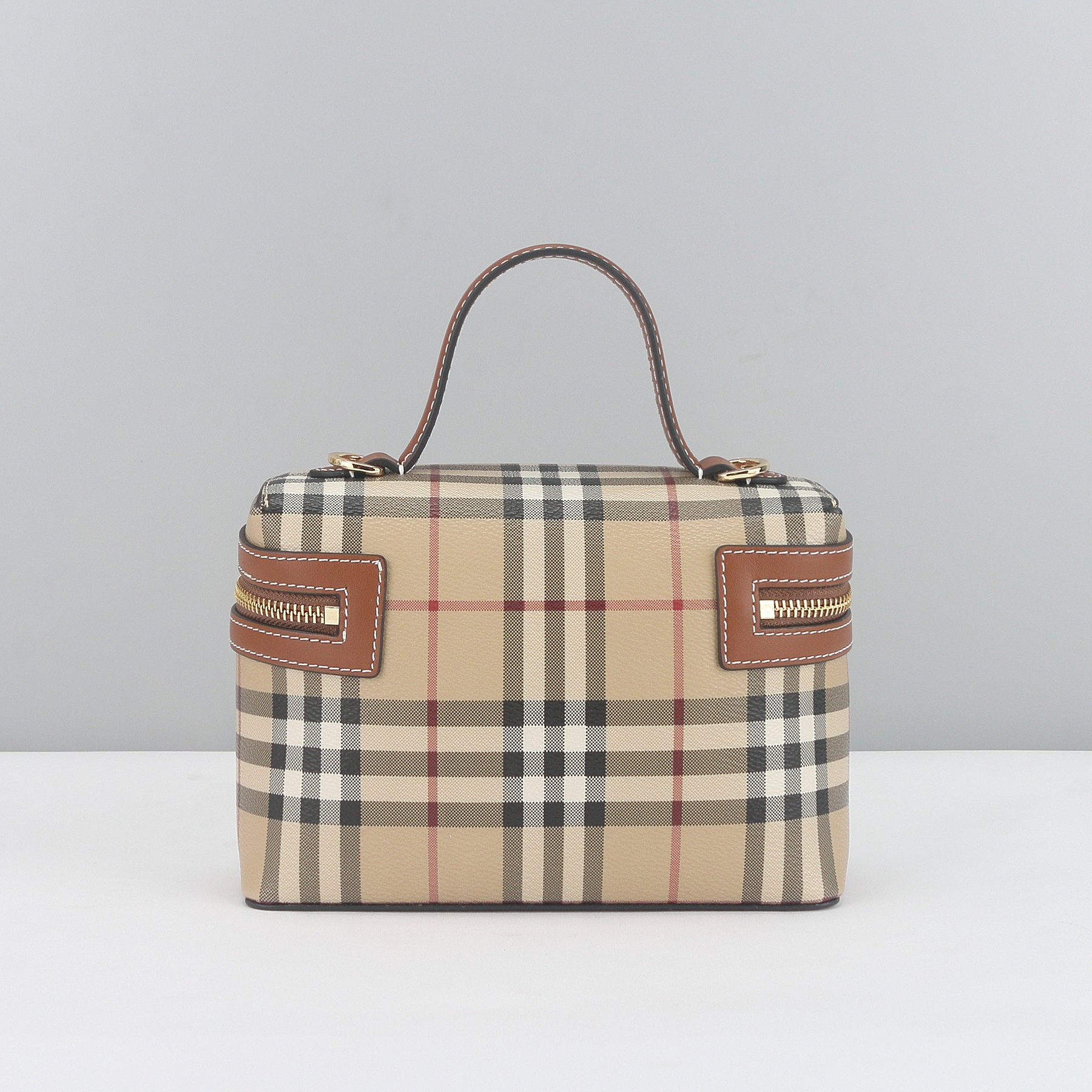 Vintage Check Box Bag – Structured Plaid Canvas with Dual-Zip & Crossbody Strap (Timeless Luxury Satchel)