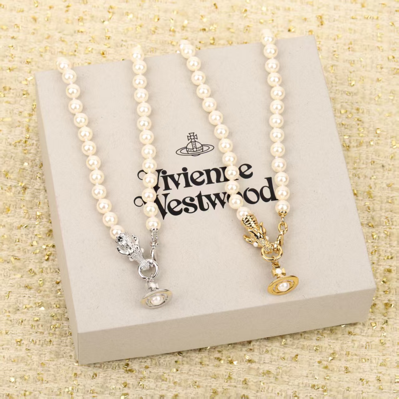 Vivienne Westwood Pearl Necklace with Dragon and Orb Charms