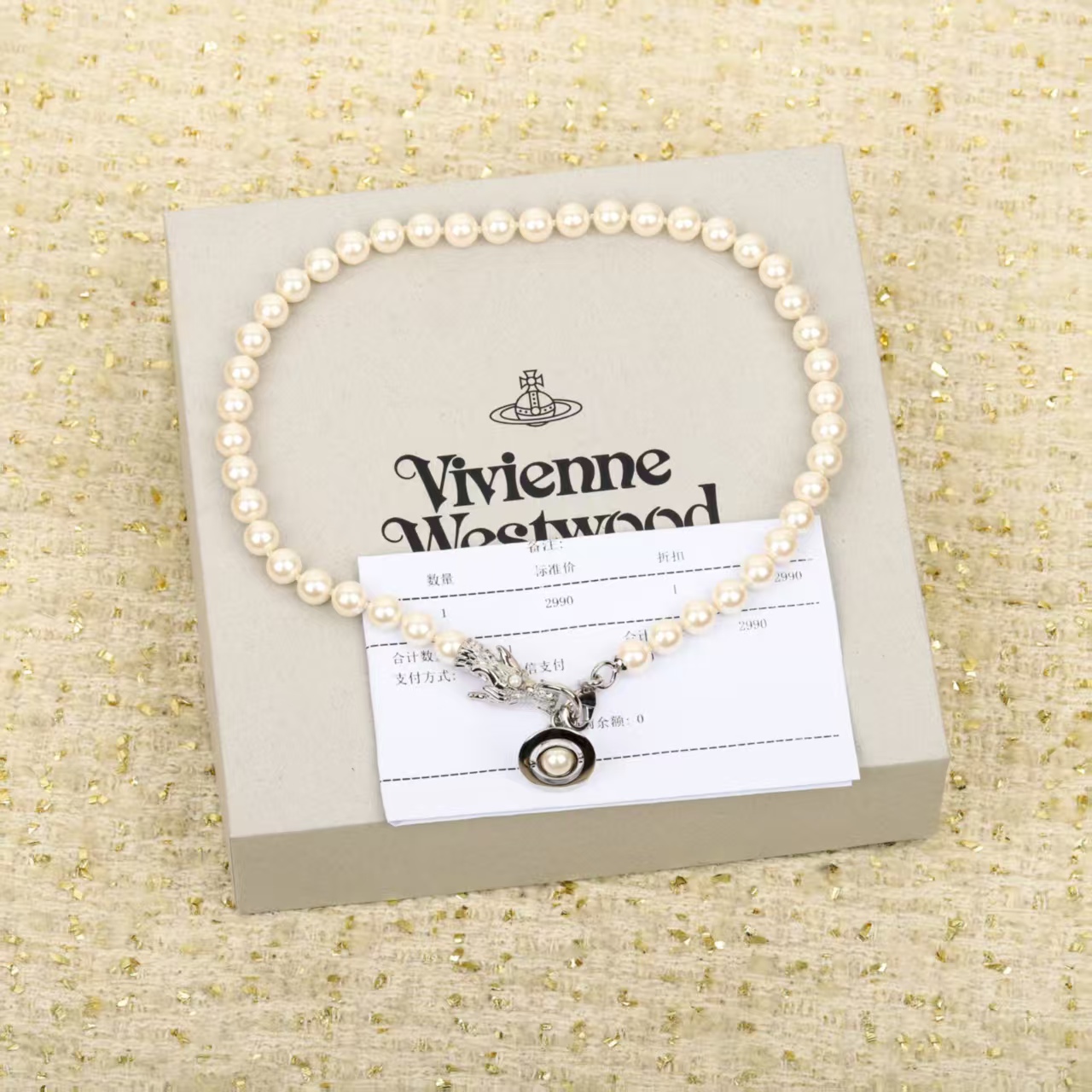 • Presented in Vivienne Westwood’s signature packaging, this piece blends classic pearl elegance with the brand’s avant – garde and whimsical design elements, making it a standout accessory that reflects Vivienne Westwood’s unique style.