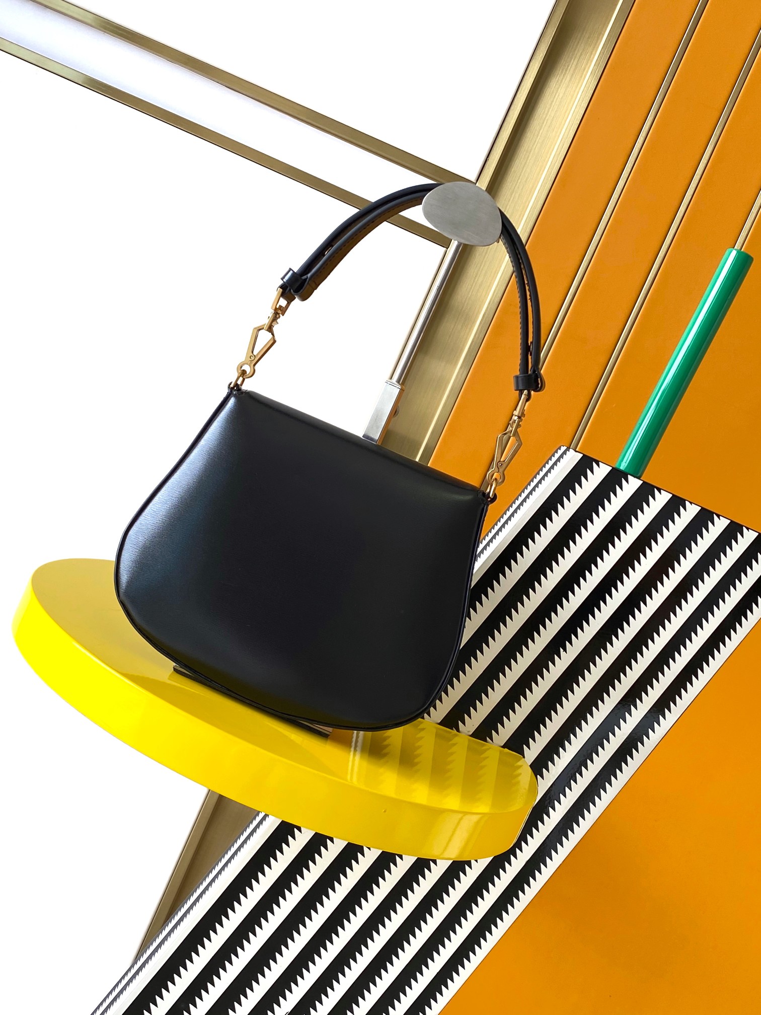 Its clean, understated design—paired with the warm contrast of gold-tone hardware—creates a versatile aesthetic that transitions seamlessly from professional settings to evening occasions.