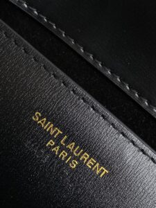 Inside, the lined leather interior offers a slip pocket for organized storage of daily essentials, while the “SAINT LAURENT PARIS MADE IN ITALY” label is printed neatly inside, affirming its premium Italian craftsmanship.