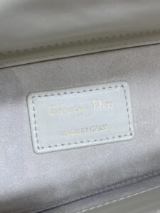 • The interior is lined in soft light gray fabric, featuring a slip pocket and a “Christian Dior PARIS MADE IN ITALY” label for authenticity.