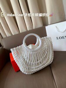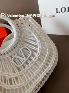 • The product in the pictures is a stylish handbag from Valentino, crafted from white woven material.